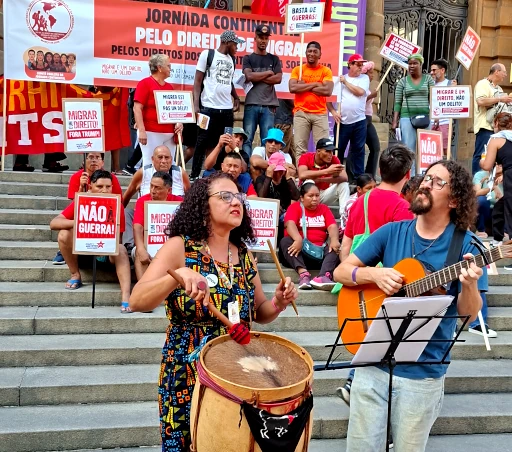 Cerca de 500 pessoas participaram, na tarde do sábado, 14 de março, em São Paulo, da Jornada Continental em Defesa do Direito à Migração e da Soberania Nacional. O ato ocorreu nas escadas do Teatro Municipal, na praça Ramos de Azevedo, e contou com mais de 25 entidades e partidos.